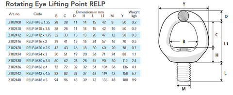 Une charge bien supérieure à un anneau DIN580:- Le RELP supporte une charge d'utilisation bien supérieur à un anneau de levage DIN580.