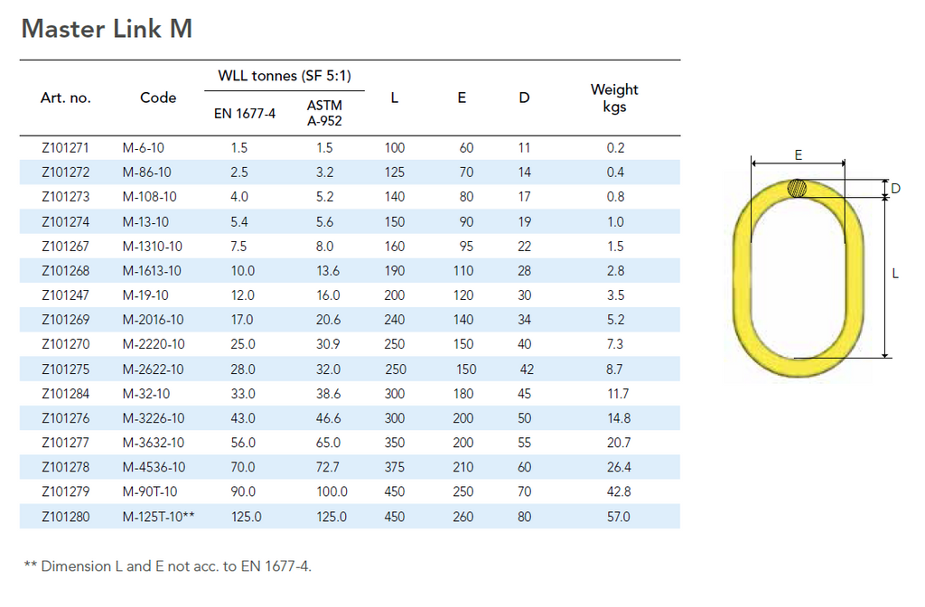 Répond aux exigeances des normes : EN 1677:2008 (WLL +25%), ASTM A952/A952M, AS 3775:2015 et AS 3776:2015