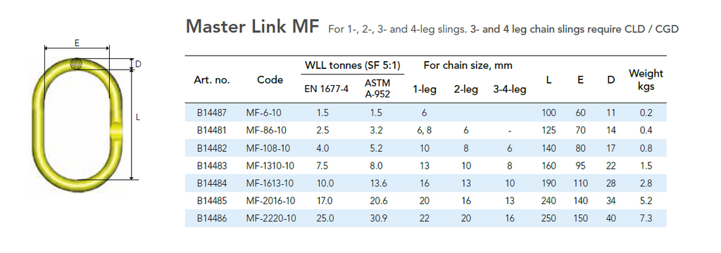 Répond aux exigeances des normes : EN 1677:2008 (WLL +25%), ASTM A952/A952M, AS 3775:2015 et AS 3776:2015