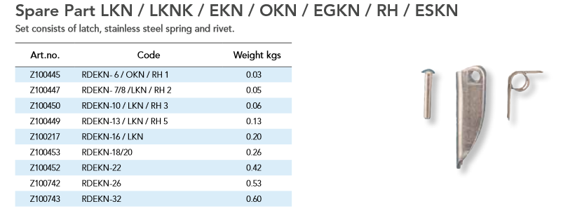 Linguet de rechange pour crochet Grade 100. Convient aux crochets : LKN / LKNK / EKN / OKN / EGKN / RH / ESKN