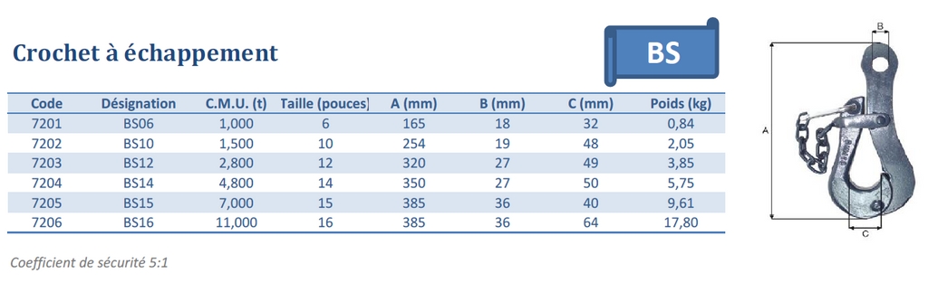 Crochet à échappement fintion peinte. Peut-être livré en galvanisé sur demande.