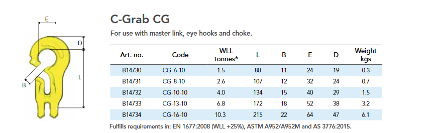 Répond aux exigeances des normes : EN 1677:2008 (WLL +25%), ASTM A952/A952M, AS 3775:2015 et AS 3776:2015