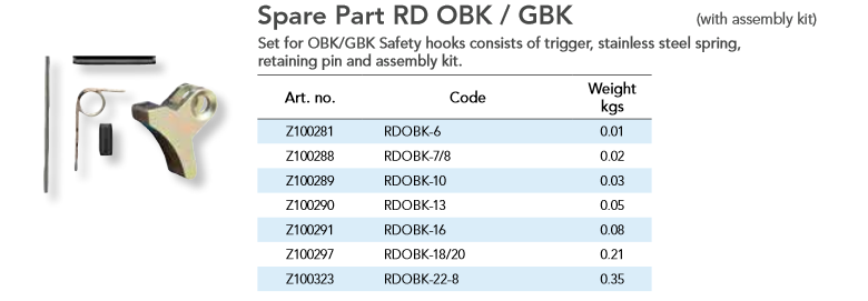 Kit de rechange pour crochet à verrouillage automatique à griffe OBK / GBK.